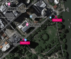 Saturday access is via either entrance. Sunday access is via Entrance 2 only.